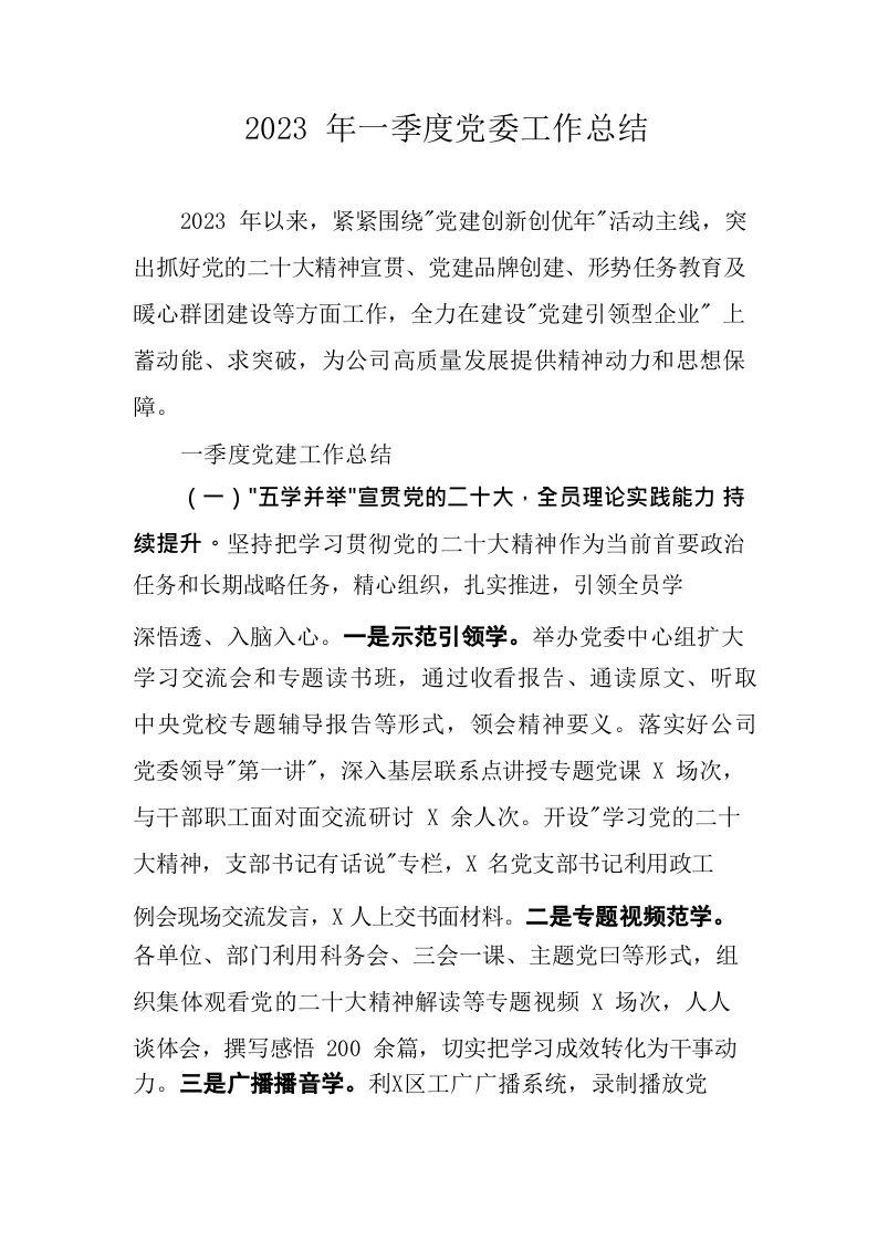 2023年党委工作总结借鉴