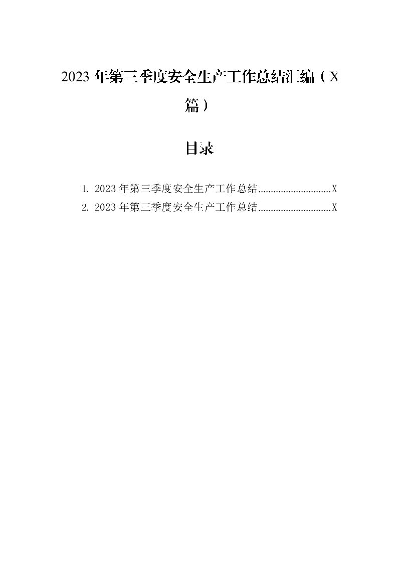 / 2023年第三季度安全生产工作总结汇编(2篇)