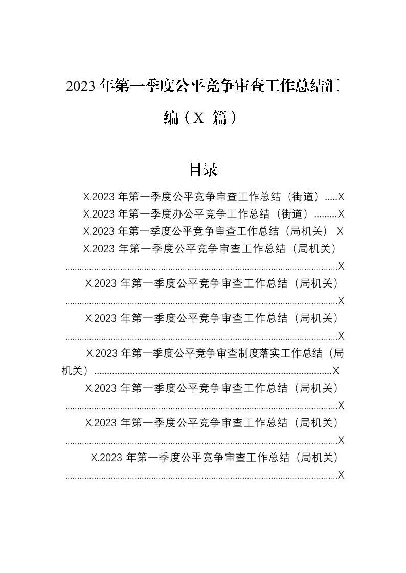 2023年第一季度公平竞争审查工作总结汇编(29篇)