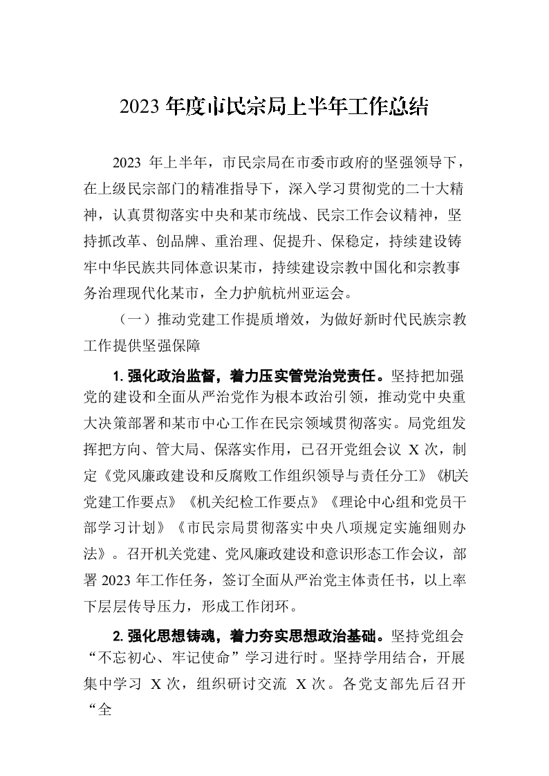 / 2023年度市民宗局上半年工作总结(20230710)