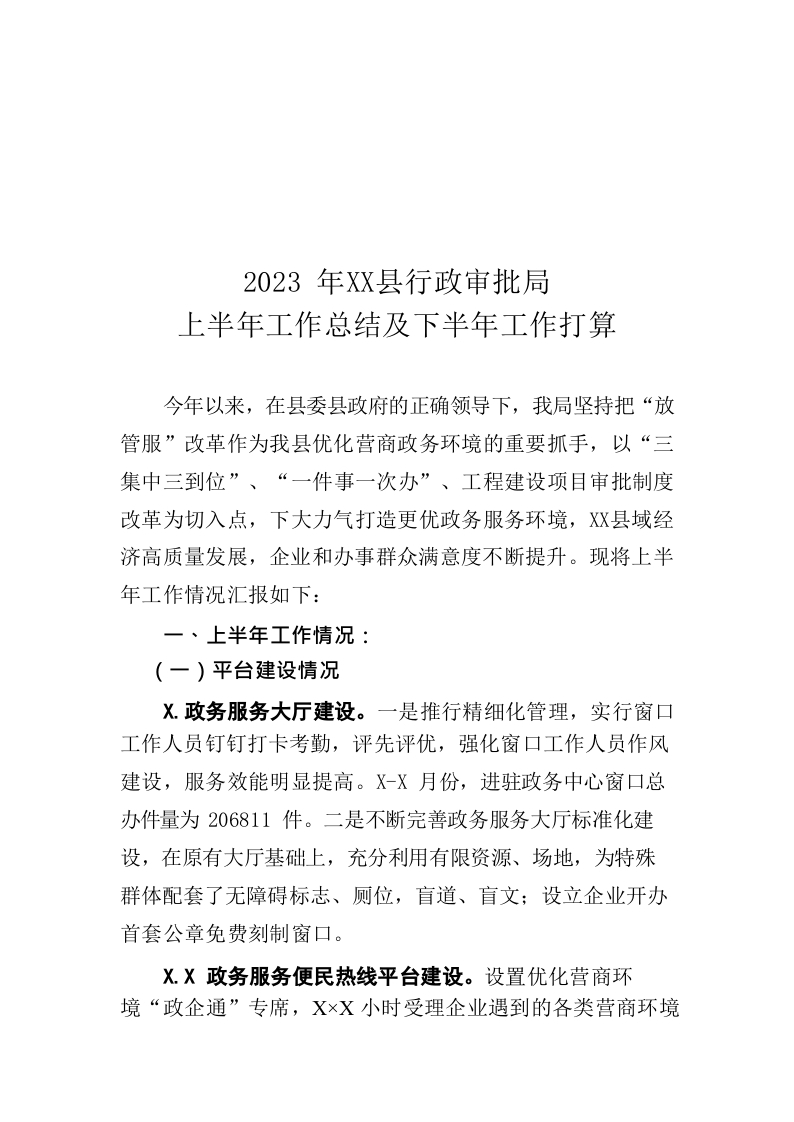 2023年度县行政审批局上半年工作总结及下半年工作打算