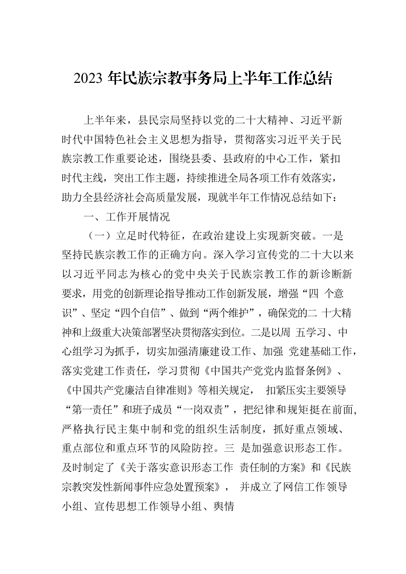 / 2023年民族宗教事务局上半年工作总结(20230707)