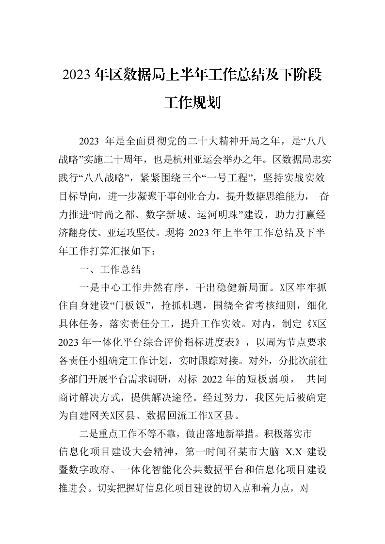 / 2023年区数据局上半年工作总结及下阶段工作规划(20230704)