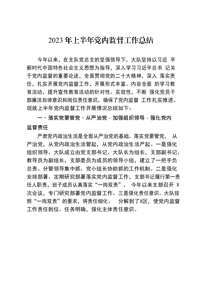 / 2023年上半年党内监督工作总结