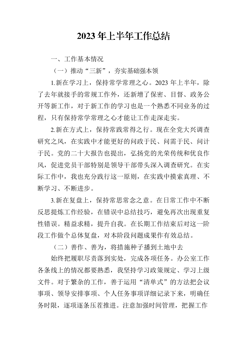 2023年上半年工作总结(个人)