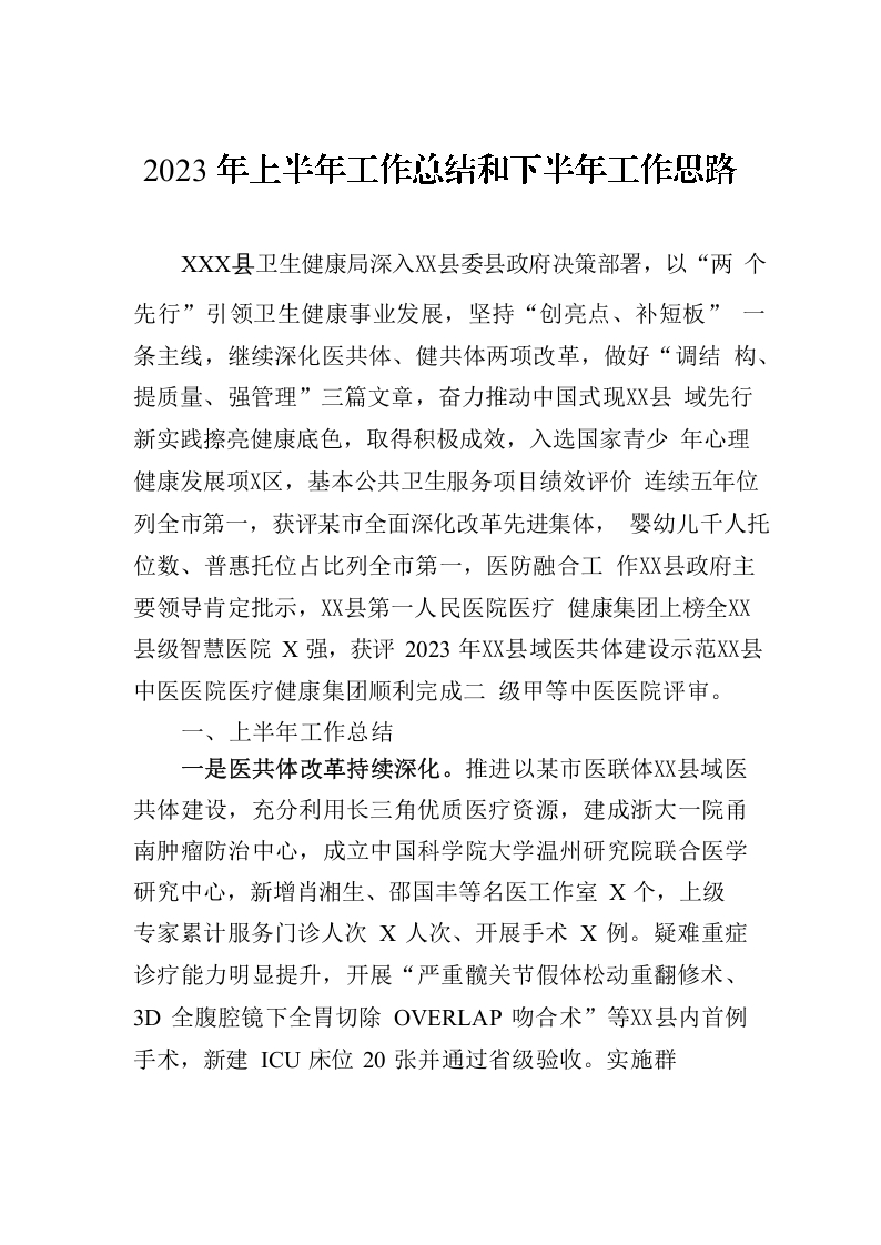 2023年上半年工作总结和下半年工作思路汇编(3篇)