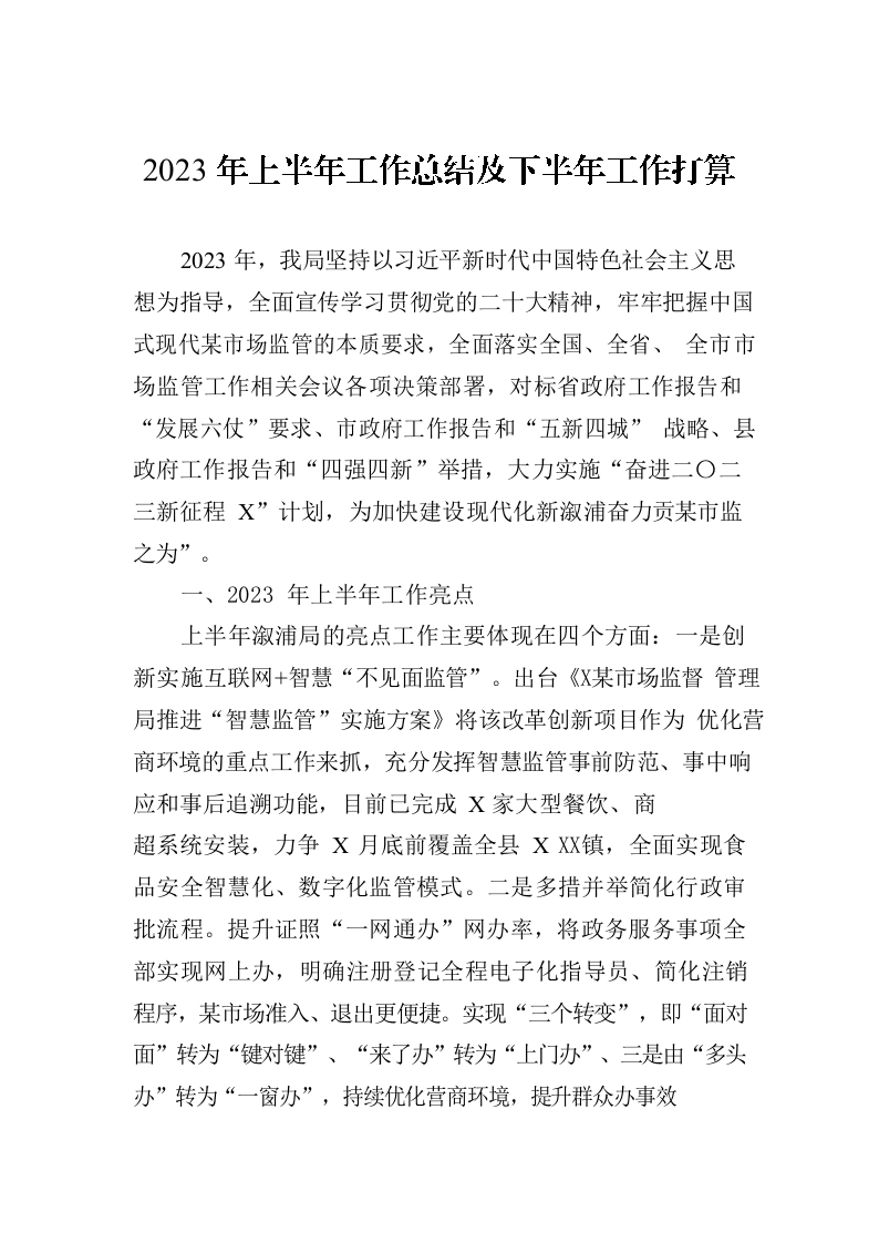 / 2023年上半年工作总结及下半年工作打算