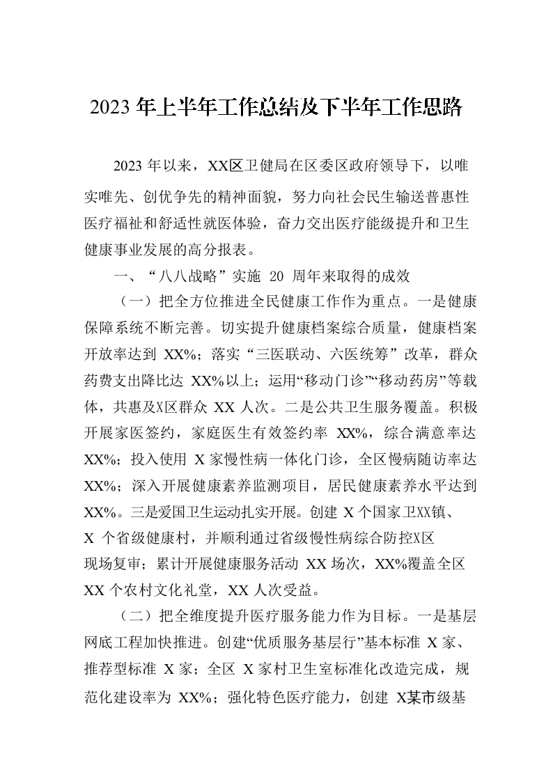 / 2023年上半年工作总结及下半年工作思路(20230707)