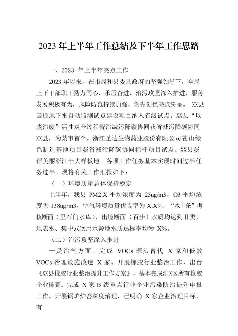2023年上半年工作总结及下半年工作思路汇编(10篇)