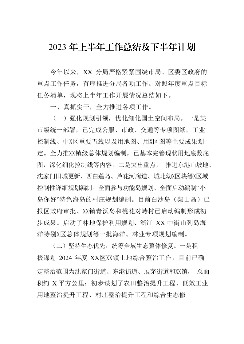 / 2023年上半年工作总结及下半年计划(20230802)