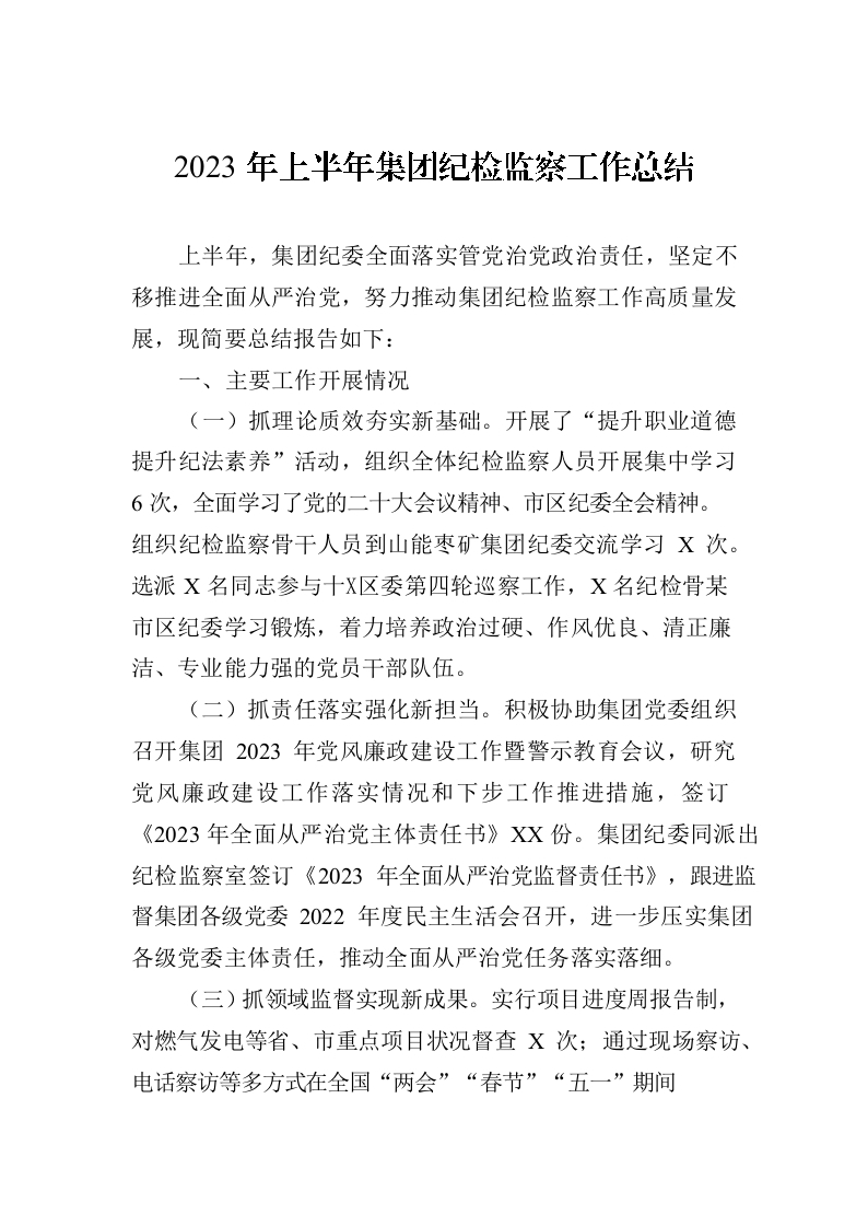 / 2023年上半年集团纪检监察工作总结