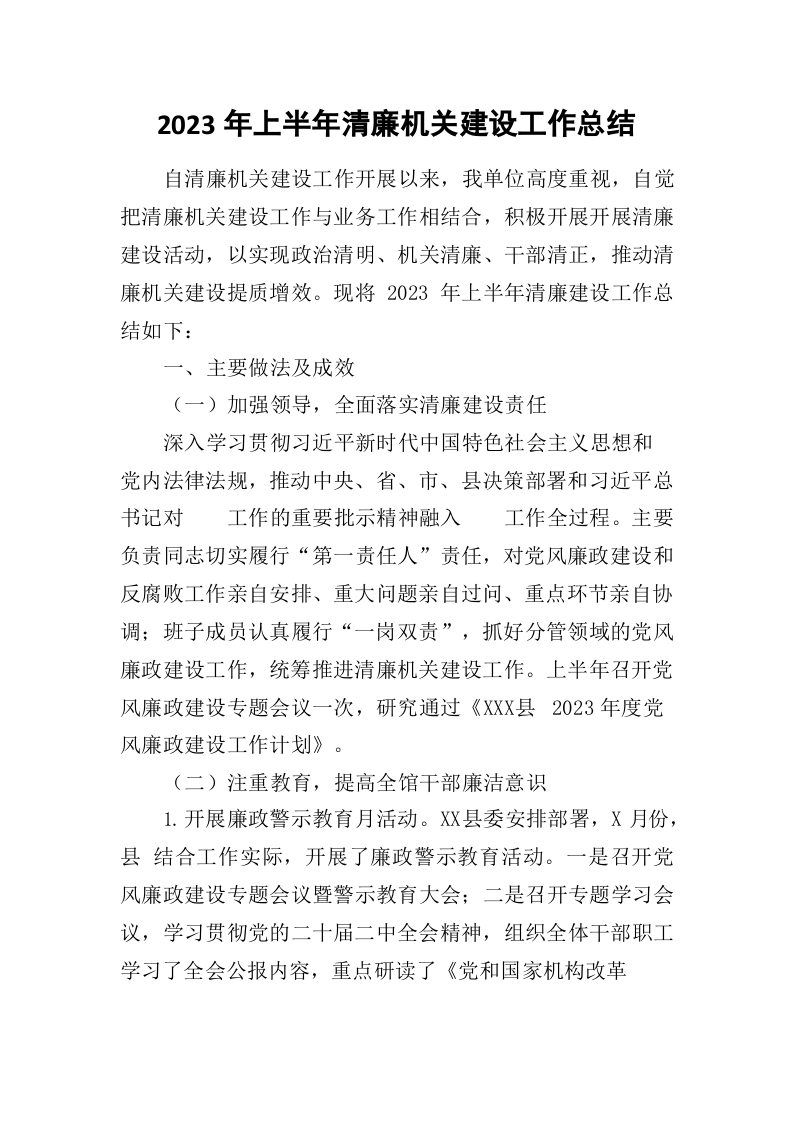 / 2023年上半年清廉机关建设工作总结