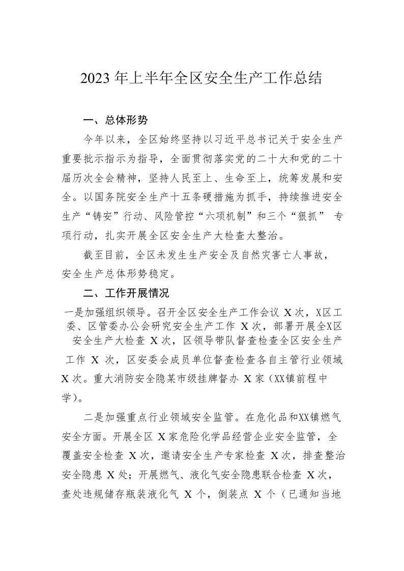 / 2023年上半年全区安全生产工作总结(20230627)