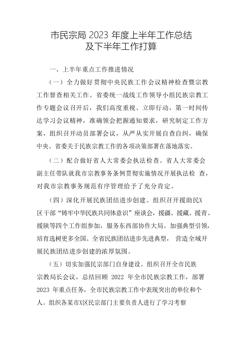 / 2023年上半年市民宗局工作总结