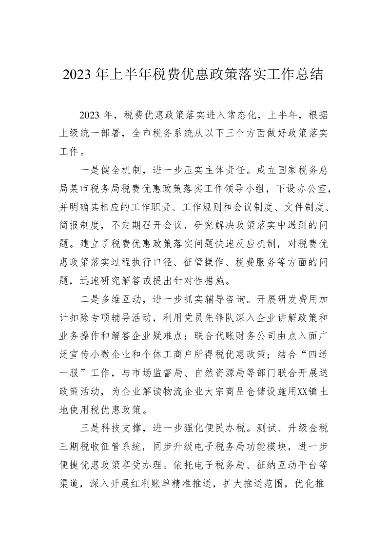 / 2023年上半年税费优惠政策落实工作总结(20230621)