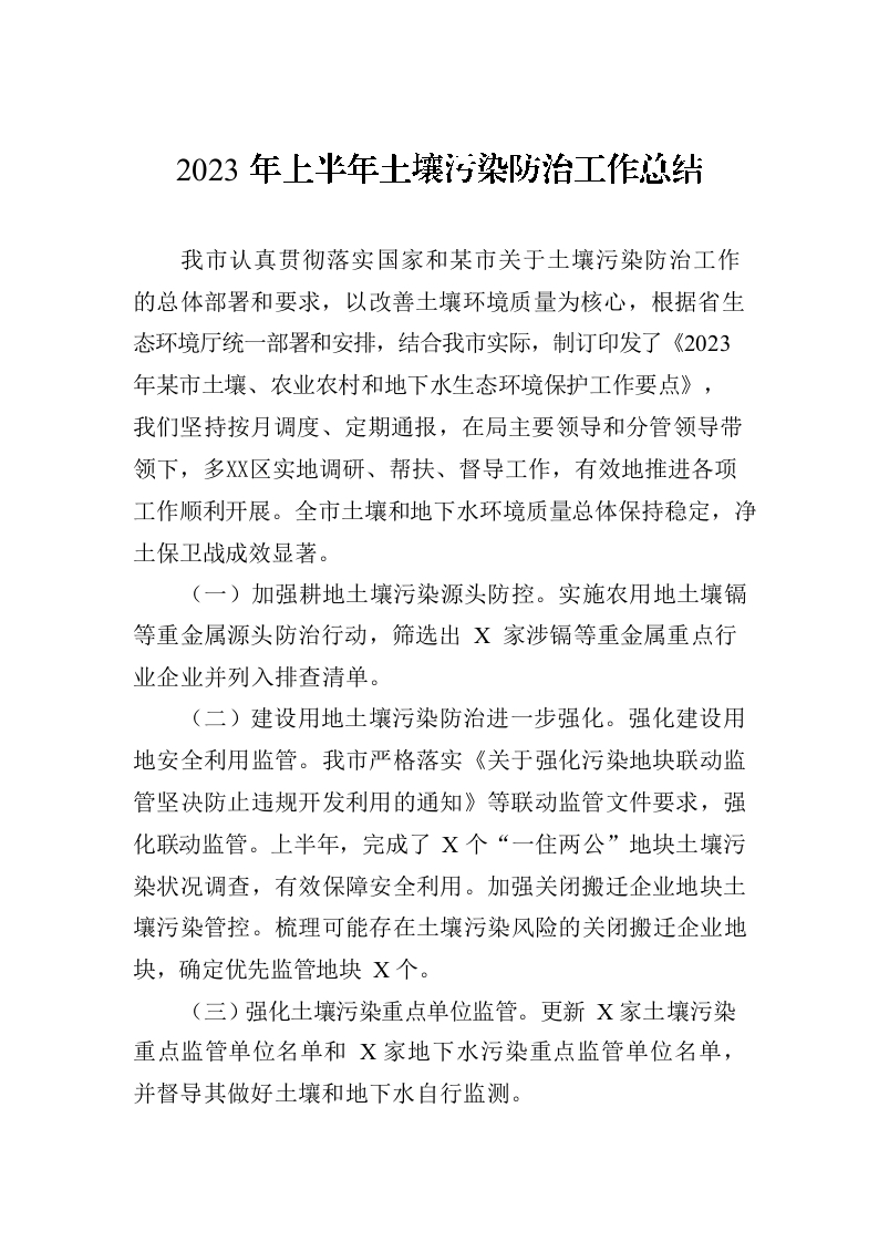 / 2023年上半年土壤污染防治工作总结(20230630)