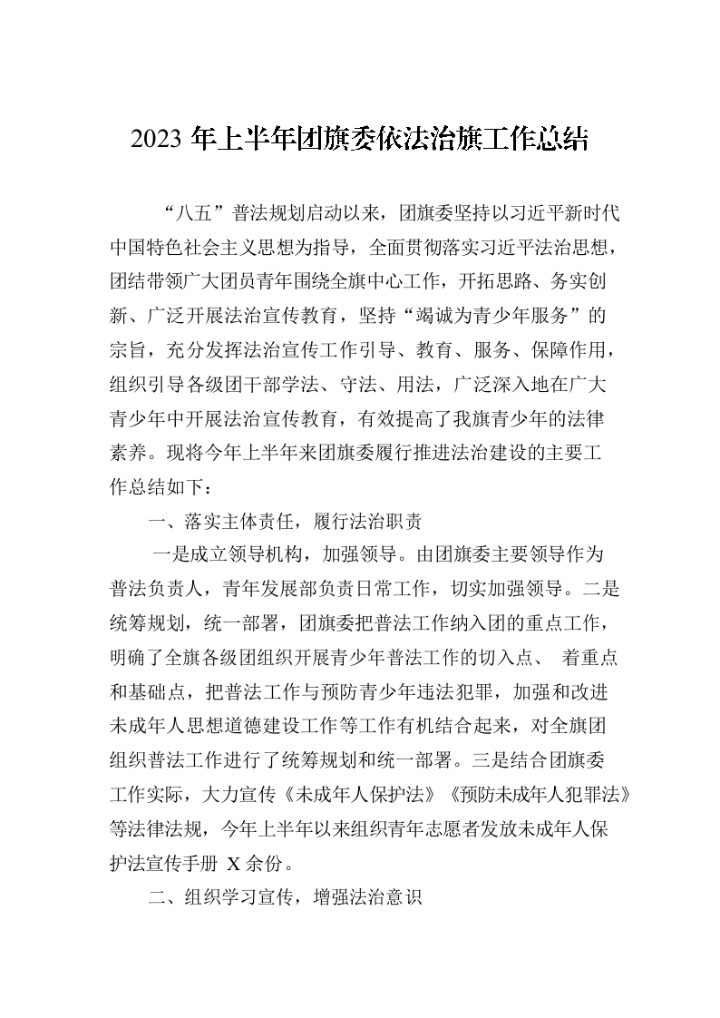 2023年上半年团旗委依法治旗工作总结(20230625)