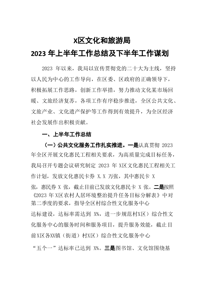 / 2023年上半年文旅局工作总结