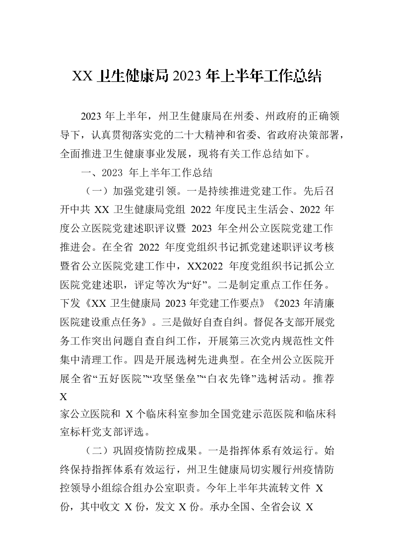 / XX卫生健康局2023年上半年工作总结(20230630)