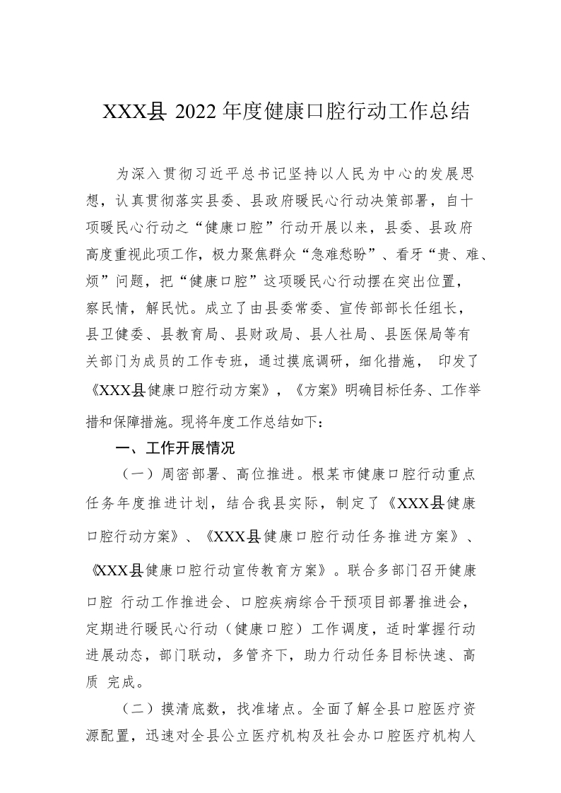 / XX县2022年度健康口腔行动工作总结