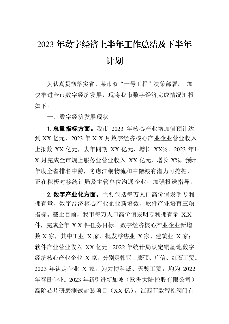 / 2023年数字经济上半年工作总结及下半年计划