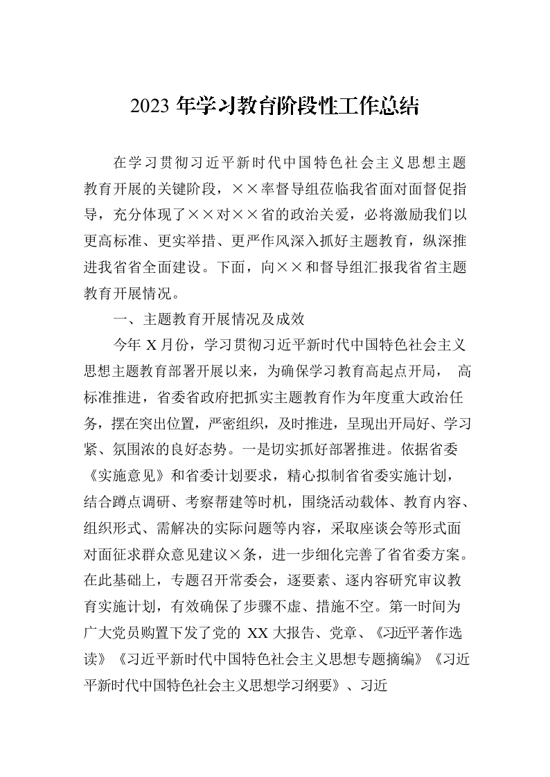2023年学习教育阶段性工作总结