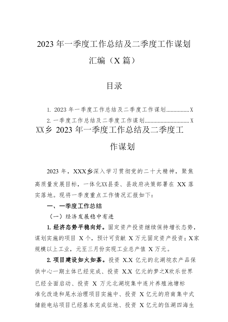 2023年一季度工作总结及二季度工作谋划汇编(2篇)