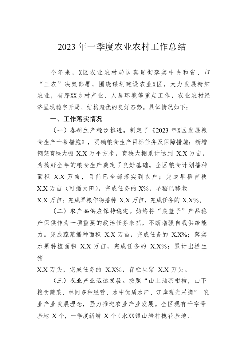 / 2023年一季度农业农村工作总结(20230504