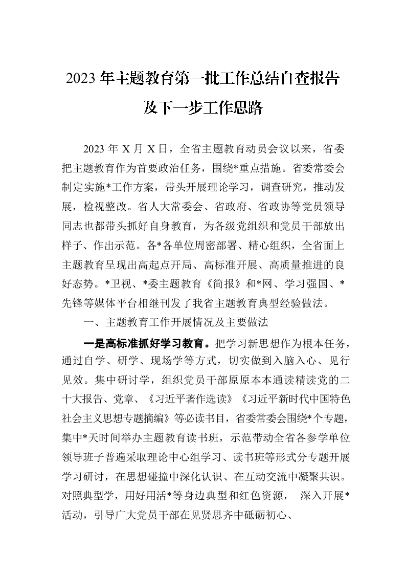 / 2023年主题教育第一批工作总结自查报告及下一步工作思路