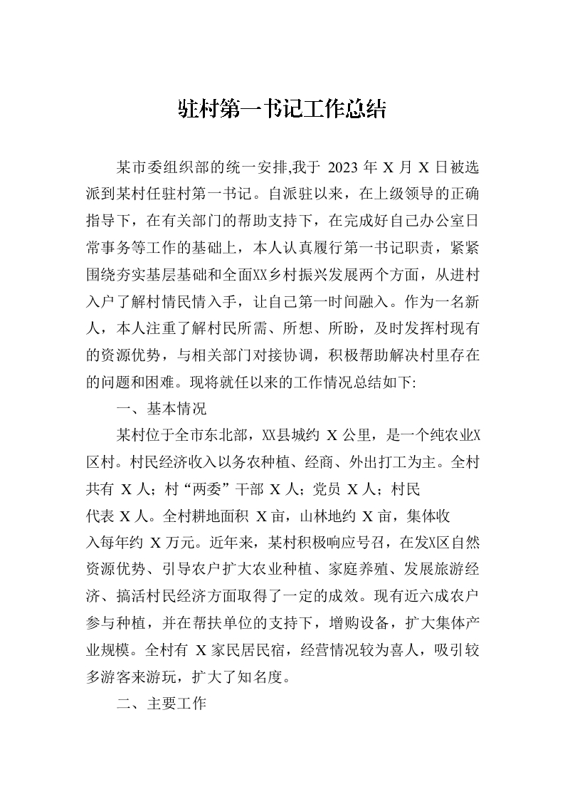 2023年驻村第一书记工作总结