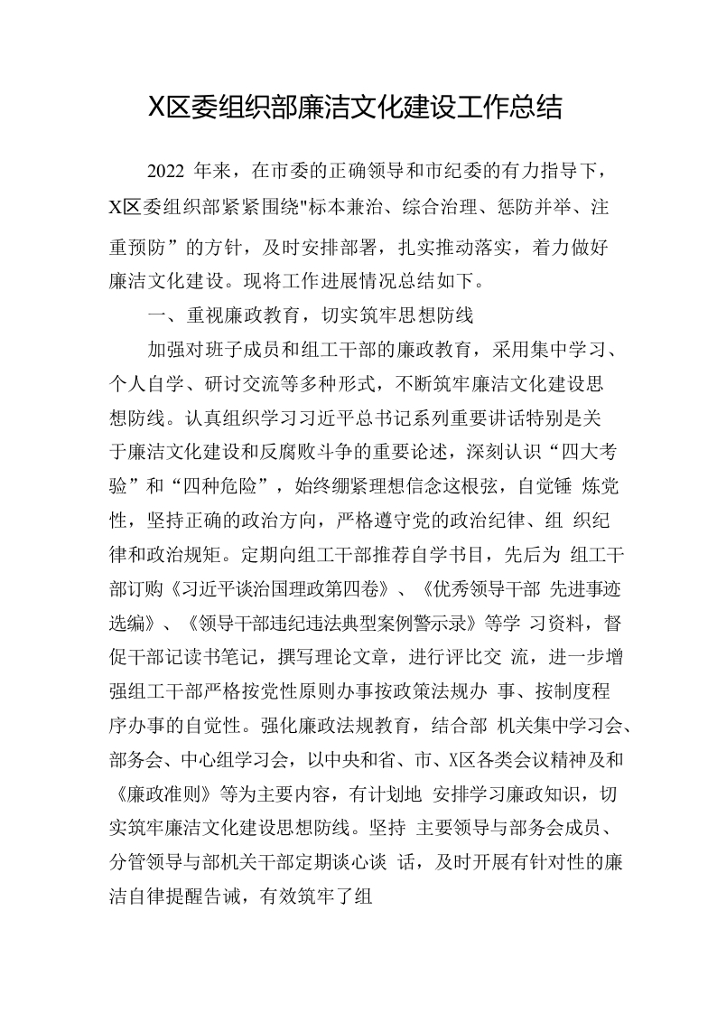 2023区委组织部廉洁文化建设工作总结