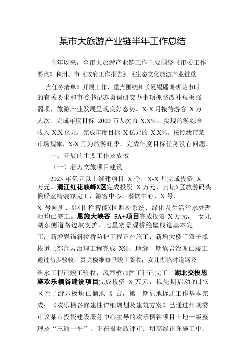 / 20230625恩施市大旅游产业链半年工作总结