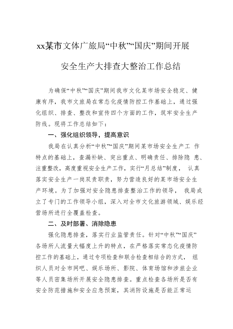 / xxx市文体广旅局“中秋”“国庆”期间开展安全生产大排查大整治工作总结