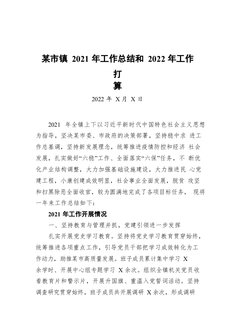 / XXX镇2021年工作总结和2022年工作打算