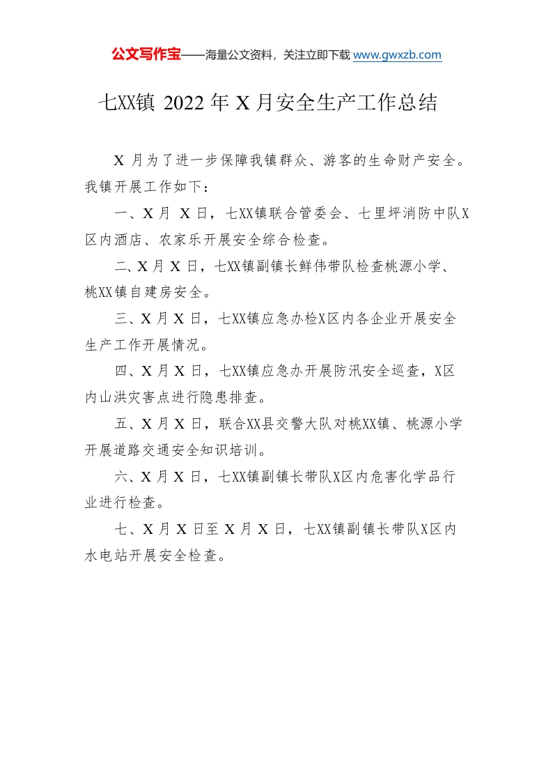 / XXX镇2022年5月安全生产工作总结