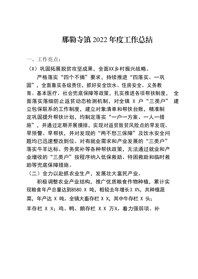 / XXX镇2022年度工作总结