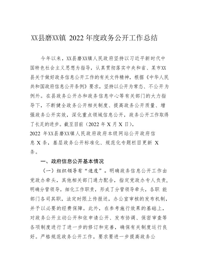 / XXX镇2022年度政务公开工作总结(20221222)