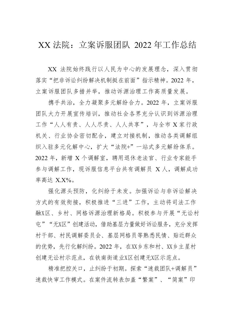XX法院:立案诉服团队2022年工作总结(20221215)