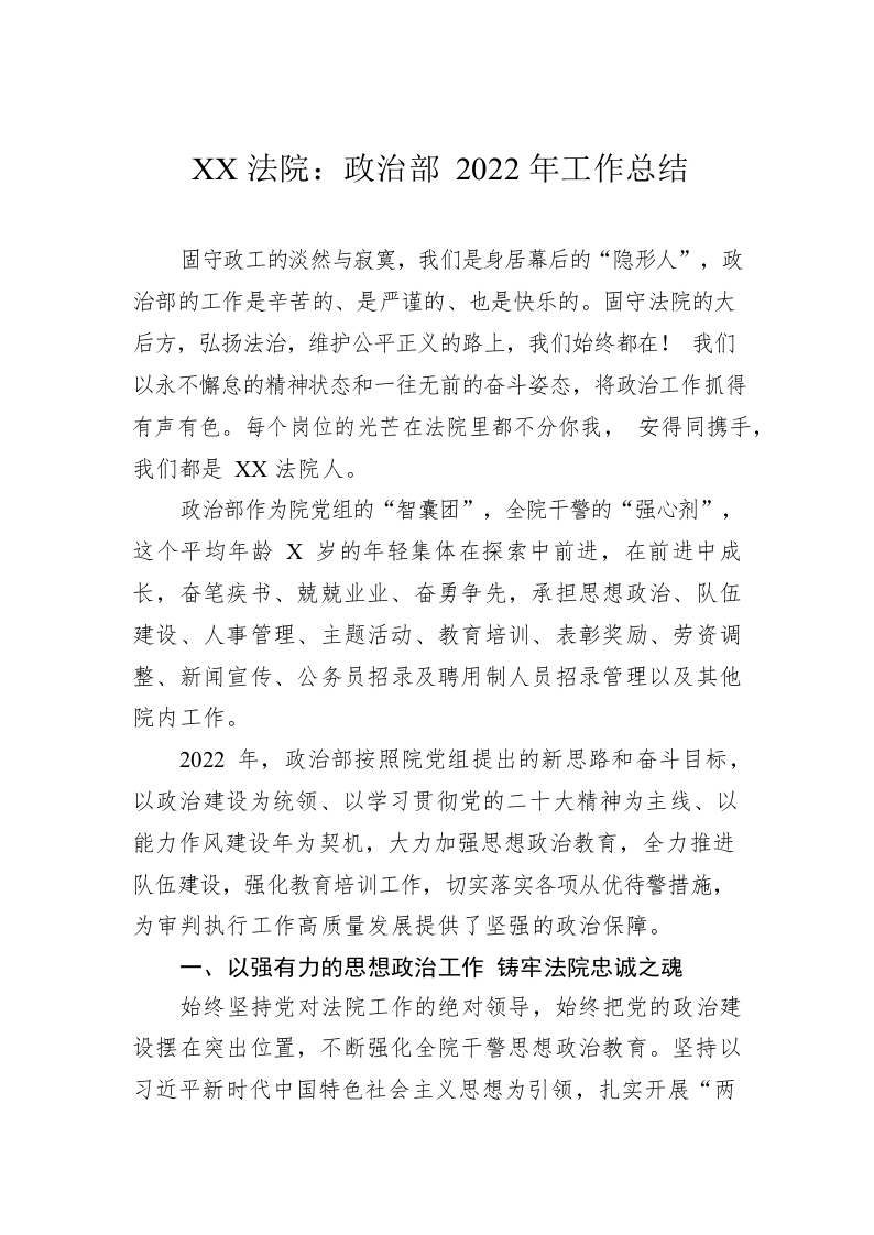 / XX法院:政治部2022年工作总结(20221214)