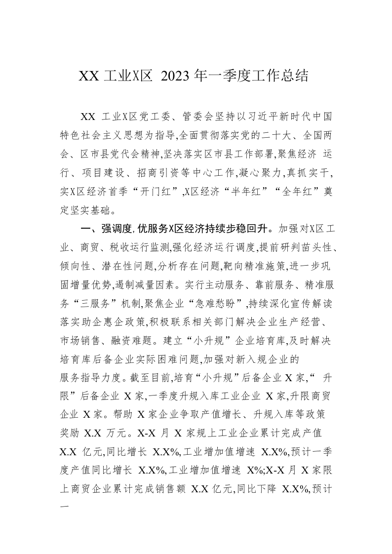 / XX工业园区2023年一季度工作总结(20230420)