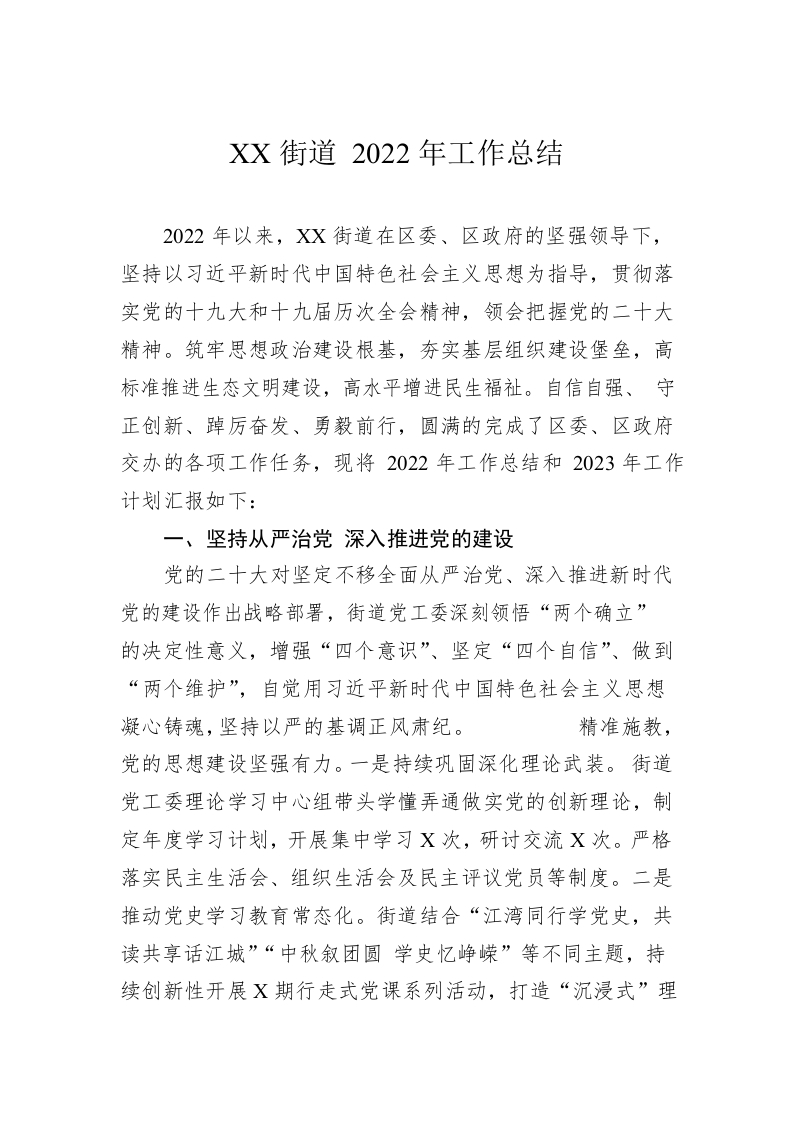 XX街道2022年工作总结和2023年工作安排(20221121)