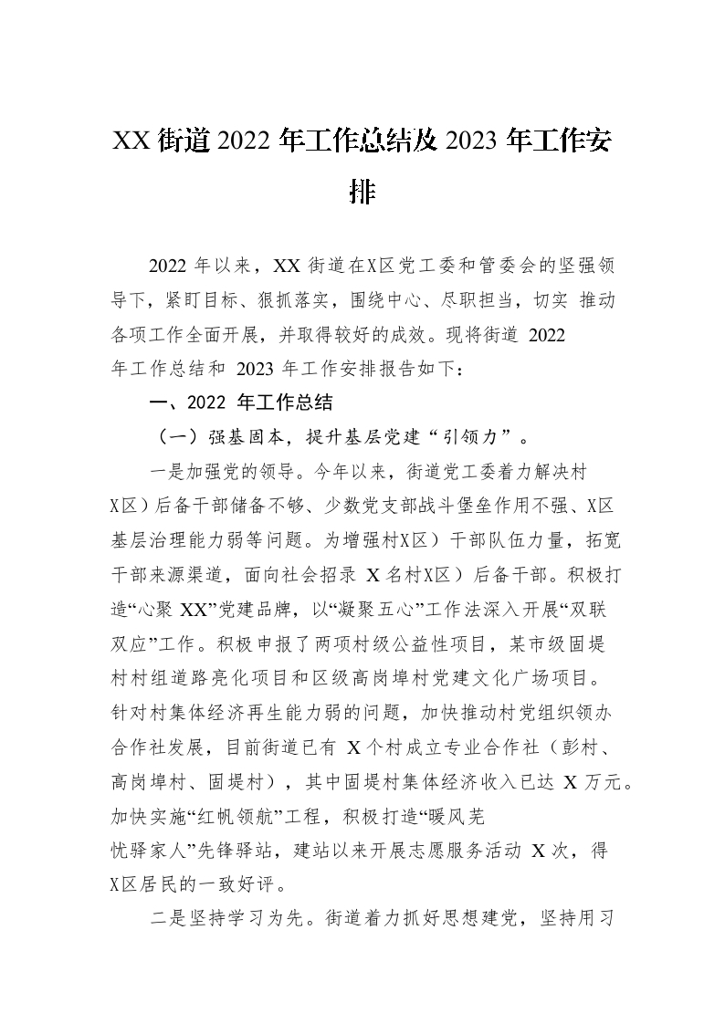 / XX街道2022年工作总结及2023年工作安排1