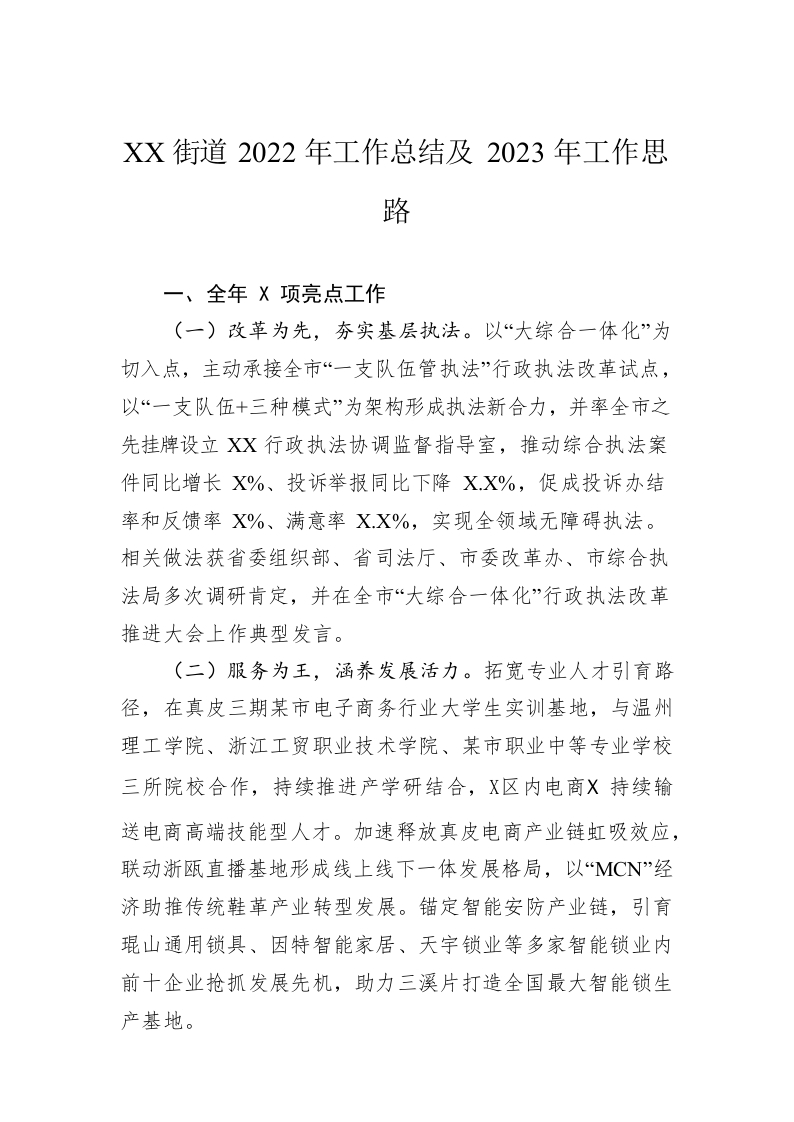 / XX街道2022年工作总结及2023年工作思路