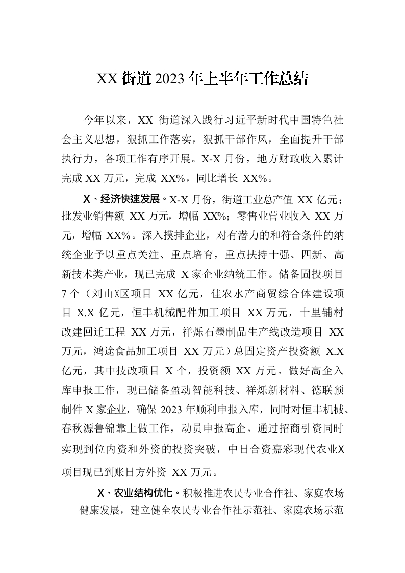 / XX街道2023年上半年工作总结(20230707)