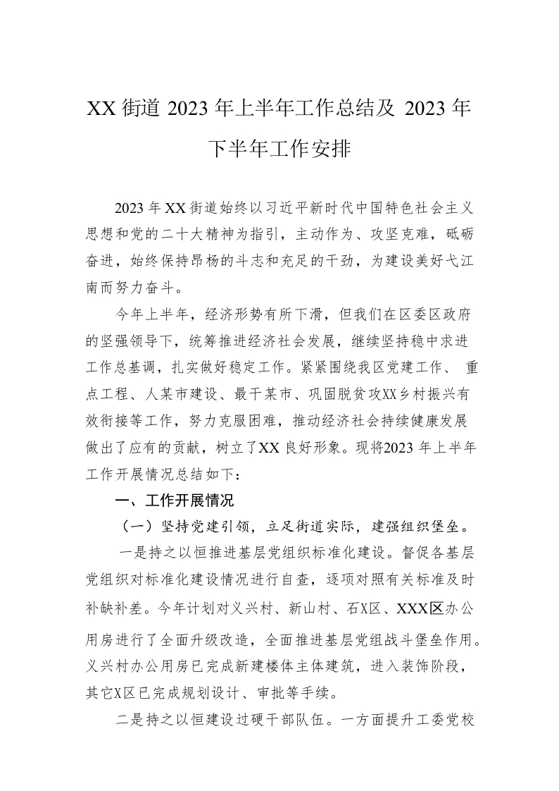XX街道2023年上半年工作总结及2023年下半年工作安排(20230609)