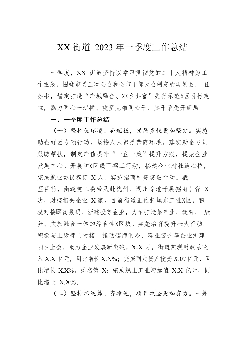 / XX街道2023年一季度工作总结(20230607)