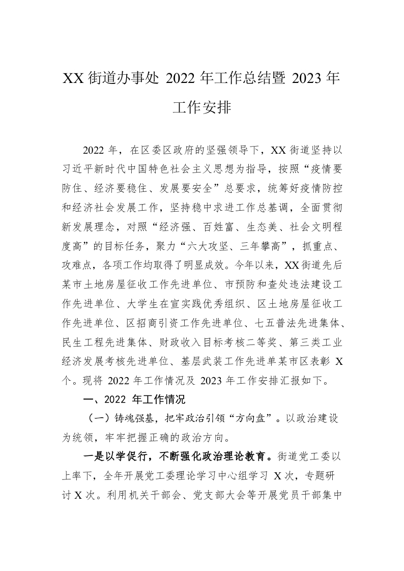 / XX街道办事处2022年工作总结暨2023年工作安排(20221107)