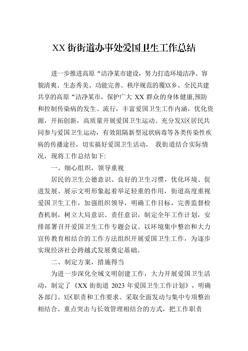 / XX街街道办事处爱国卫生工作总结(20230529)
