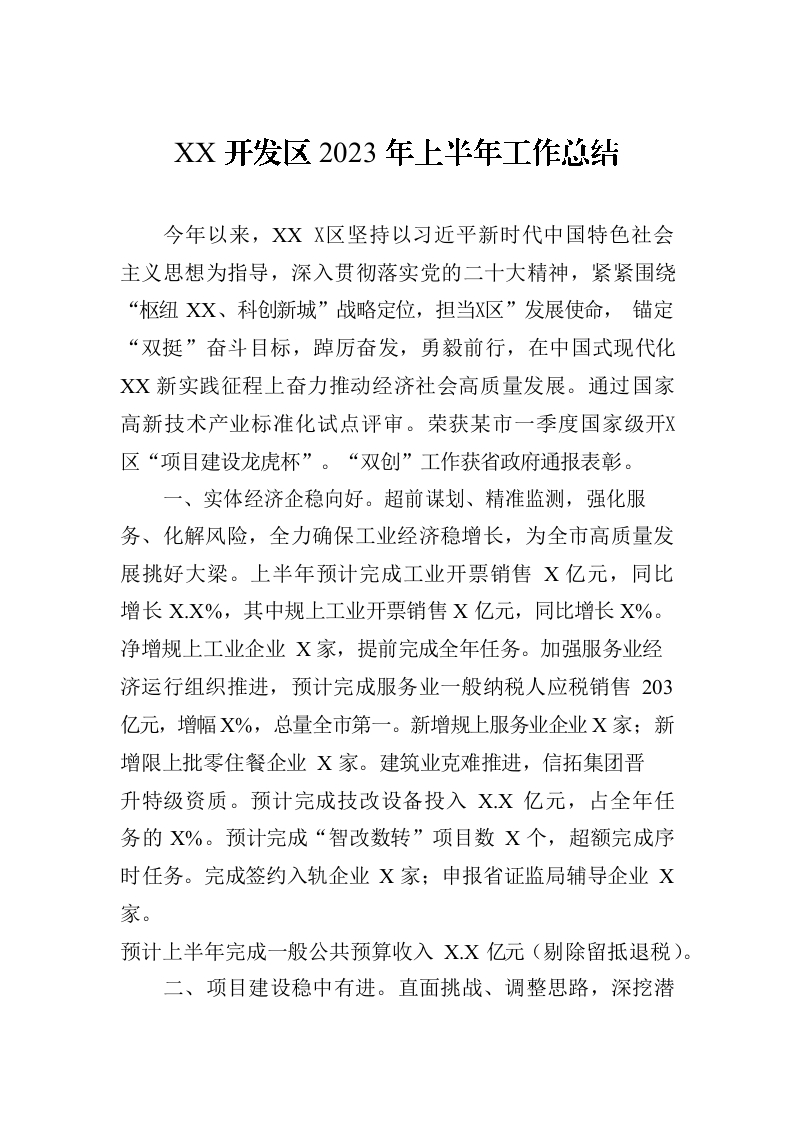 XX开发区2023年上半年政务公开工作总结(20230615)