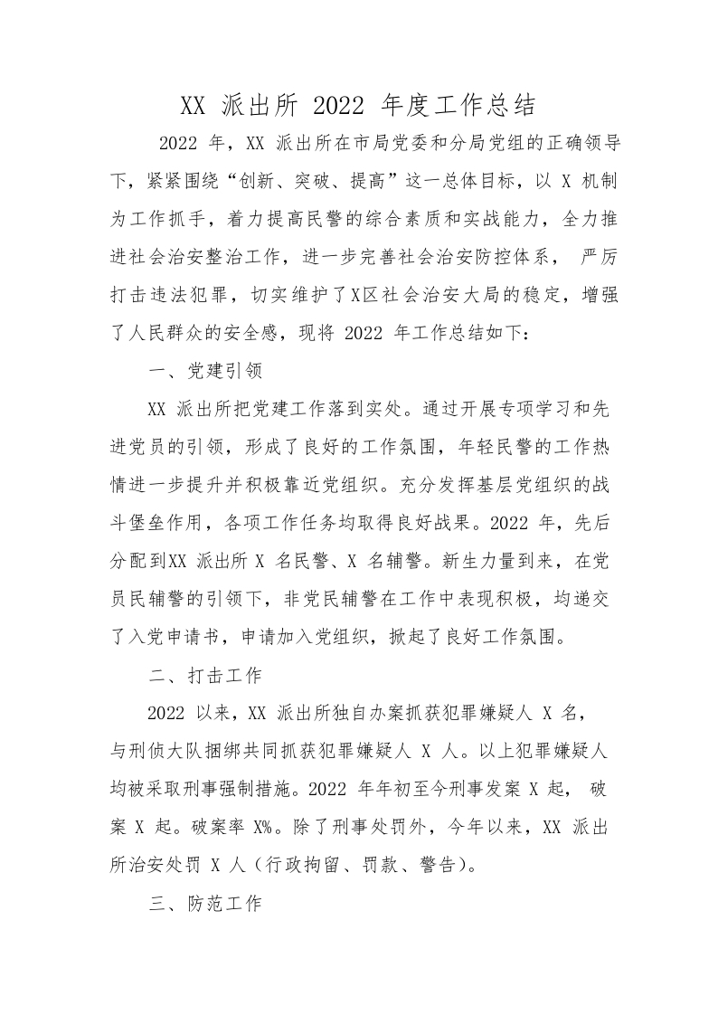 / XX派出所2022年度工作总结